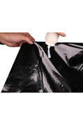 Dare to try something different with this slick and shiny plastic (PVC) bed sheet. This dark and sexy sheet fits perfectly over your twin size bed with its fitted corners. Just slip it on, climb on top, and the rest is up to you. With its waterproof design, you can get as wet as you want.